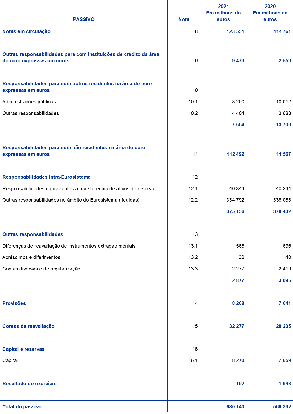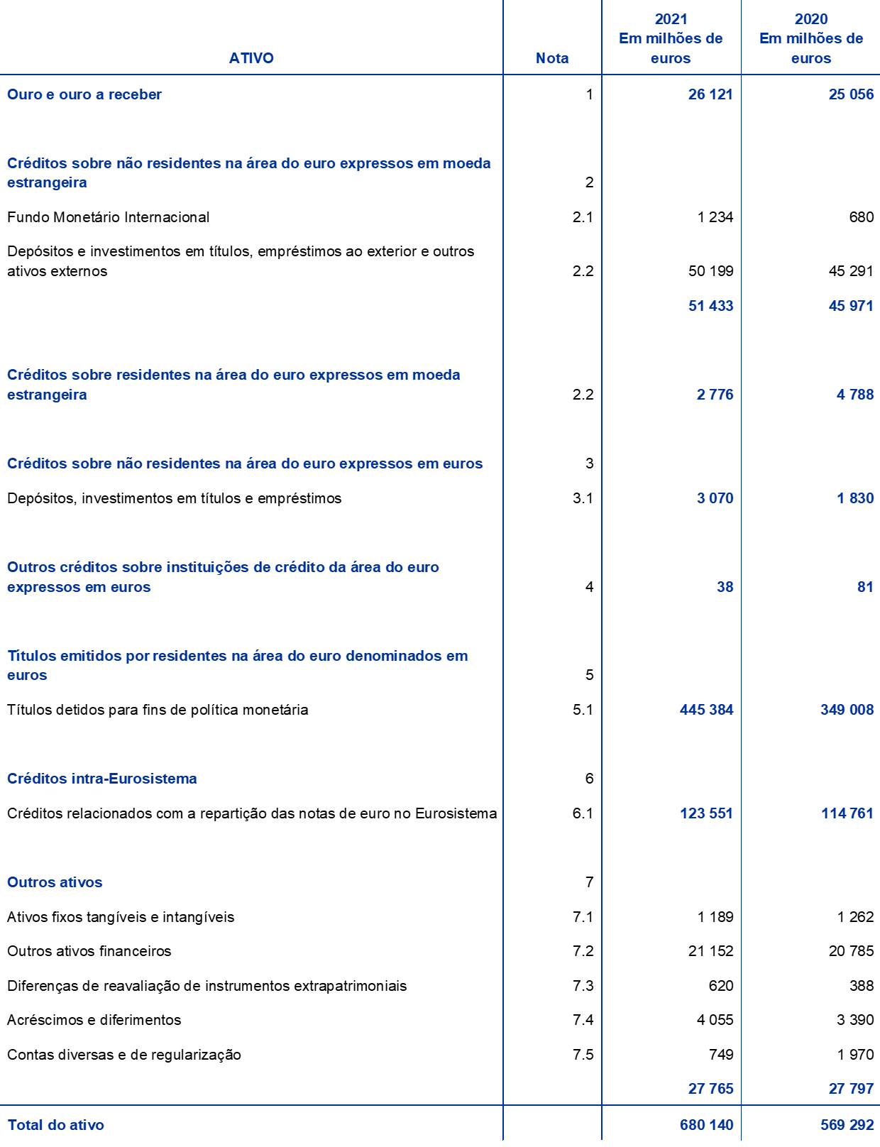 Esta nota não é parte integrante das demonstrações financeiras do BCE para o exercício de 2021.