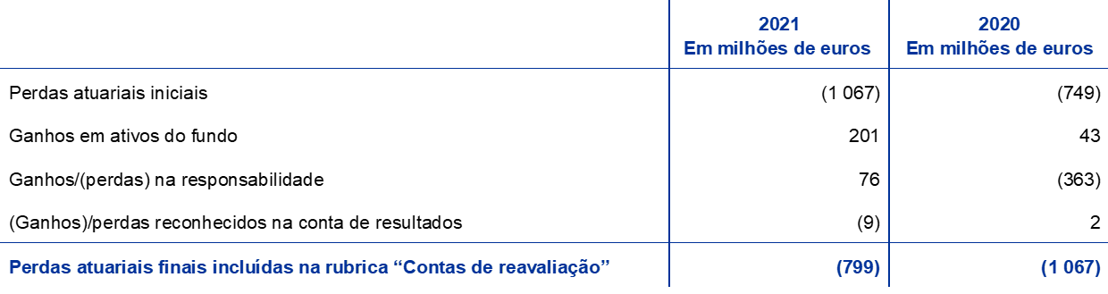 - A rubrica do balanço “Contas de reavaliação” também inclui a remensuração dos benefícios pós-emprego.
