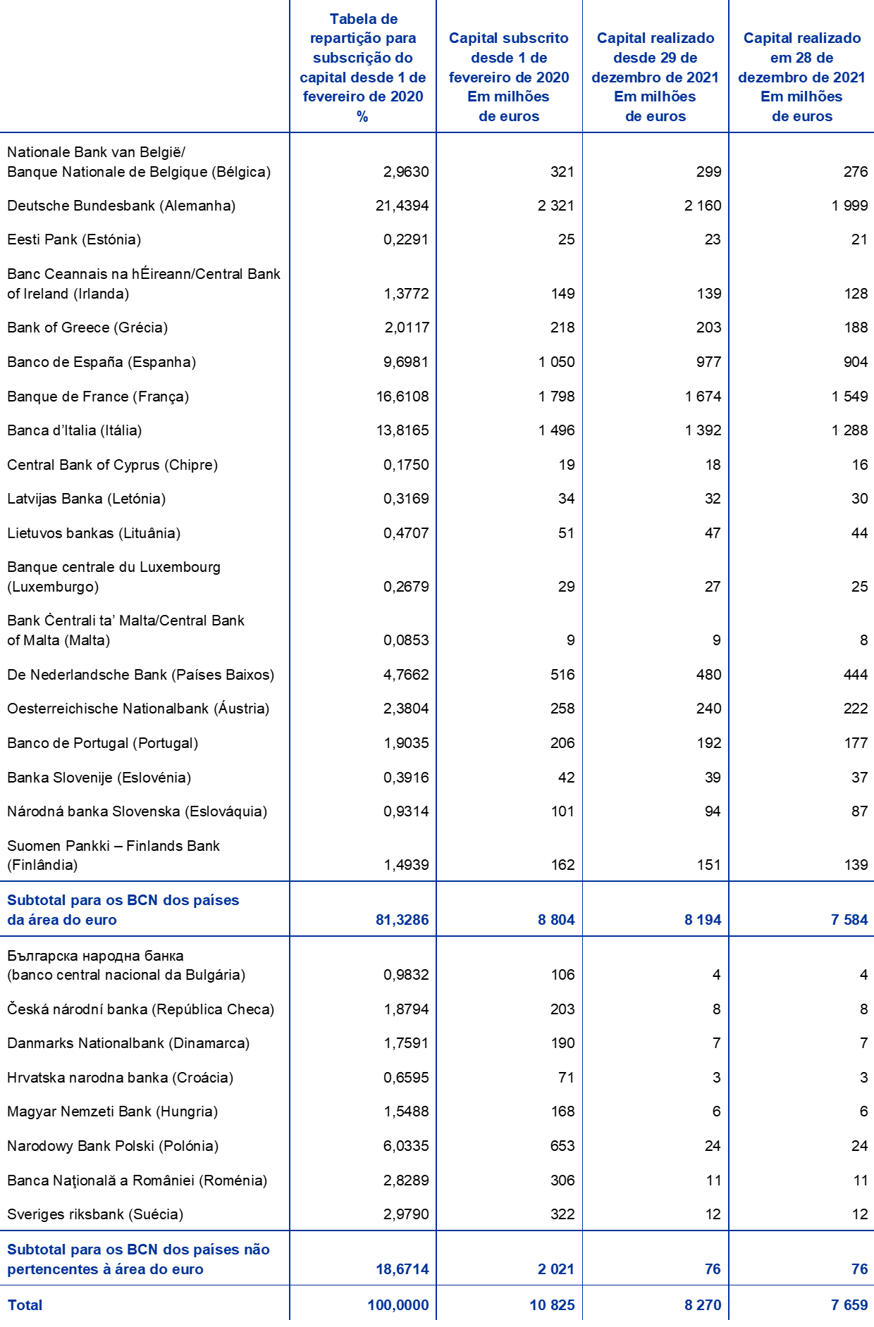 - Ver o comunicado, de 30 de janeiro de 2020, sobre o capital subscrito do BCE no seguimento da saída do Bank of England do SEBC.