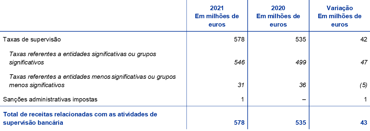 - A decisão do BCE relativa ao valor total das taxas de supervisão anuais respeitantes a 2021 será adotada e subsequentemente publicada no final de abril de 2022.