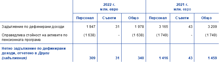 Стълбът на дефинирани доходи в пенсионната програма отразява само задължителните вноски от ЕЦБ и служителите. Доброволните вноски на служителите в стълба на дефинирани вноски са в размер на 189 млн. евро през 2022 г. (спрямо 220 млн. евро през 2021 г.). Тези вноски са инвестирани в активите по пенсионната програма и пораждат съответстващо задължение на същата стойност.