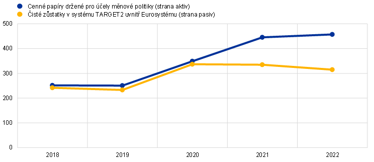 Čisté zůstatky v systému TARGET2 uvnitř Eurosystému a cenné papíry držené pro účely měnové politiky