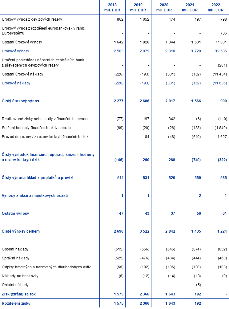 Výsledek hospodaření ECB za rok 2022 byl nulový. Nedošlo proto k rozdělení zisku.