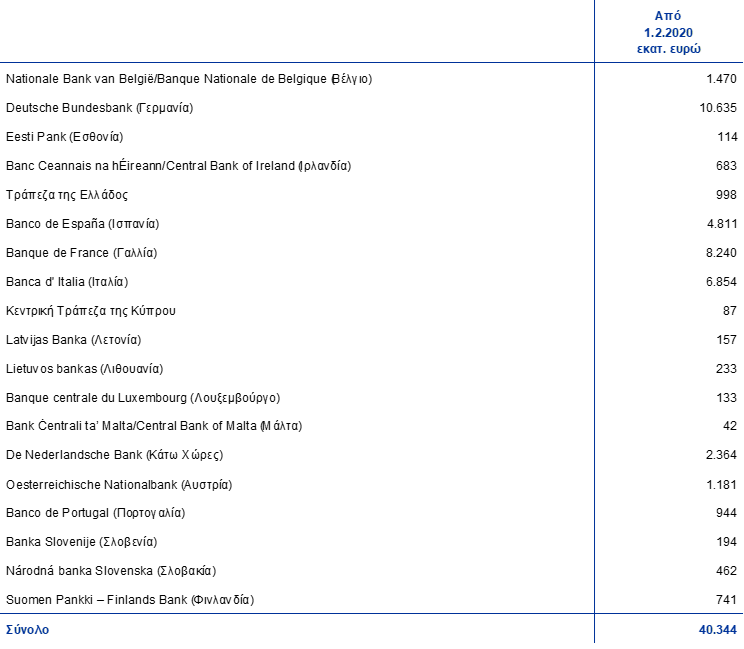 Βλ. το δελτίο Τύπου της 30.1.2020 σχετικά με το εγγεγραμμένο κεφάλαιο της ΕΚΤ μετά την αποχώρηση της Bank of England από το ΕΣΚΤ.