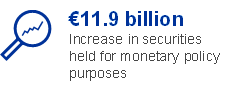 Based on the relevant Governing Council decisions, the ECB continued its net purchases of securities under the PEPP until the end of March 2022, while net purchases under the APP ended as of 1 July 2022. At the same time, the principal payments from maturing securities held in both portfolios continued to be fully reinvested during the year. As a result of these purchases and reinvestments, the portfolio of securities held by the ECB for monetary policy purposes rose by €11.9 billion to €457.3 billion (Chart 2), with PEPP and PSPP holdings increasing by €9.0 billion and €8.8 billion respectively. The €5.5 billion decrease in ABSPP holdings was due to redemptions.