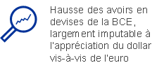 La progression de la valeur exprimée en euros des avoirs de réserve de la BCE et de la valeur des billets en euros en circulation a également contribué à la croissance du bilan de la BCE.