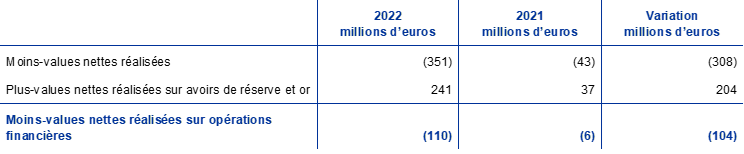 À la suite de la reprise de 1 627 millions d’euros de la provision pour risques financiers visant à compenser les pertes subies en 2022, le résultat financier de la BCE a été égal à zéro (192 millions d’euros en 2021). Les pertes sont principalement dues a) aux charges d’intérêts liées aux engagements TARGET2 nets de la BCE et b) au résultat net négatif des opérations financières et des moins-values latentes (cf. graphique 13).