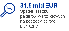 Wartość portfela funduszy własnych wzrosła o 1,0 mld EUR, do 22,1 mld EUR (wykres 8), głównie w wyniku a) reinwestycji przychodów odsetkowych z tego portfela i b) wzrostu wartości rynkowej papierów wartościowych w euro utrzymywanych w tym portfelu, wskutek spadku rentowności obligacji ze strefy euro na koniec roku (wykres 17).