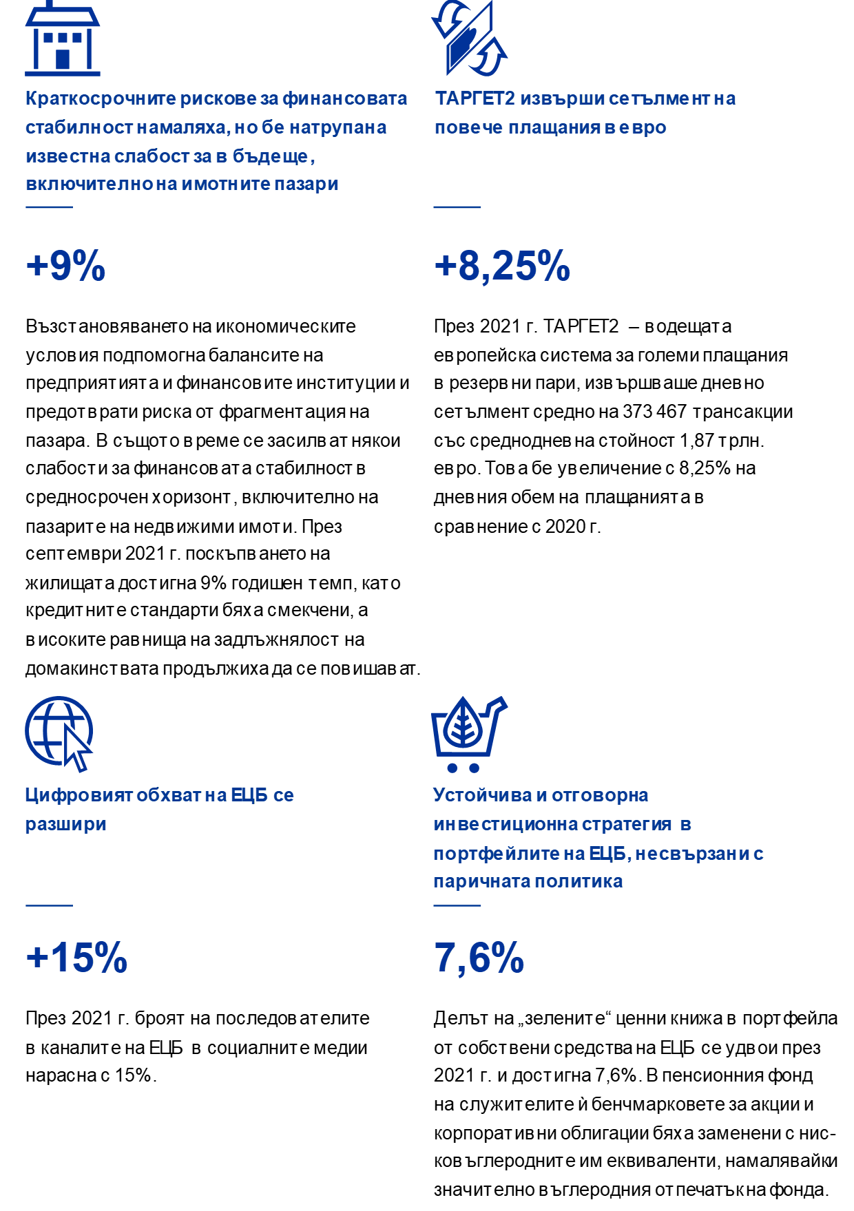 ** Трябва да се има предвид, че тези бележки се отнасят за дейността на ЕЦБ през 2021 г. и са завършени преди руската инвазия в Украйна. ЕЦБ е готова да предприеме всички необходими действия, за да опази финансовата стабилност и да изпълни мандата си за осигуряване на ценова стабилност. **