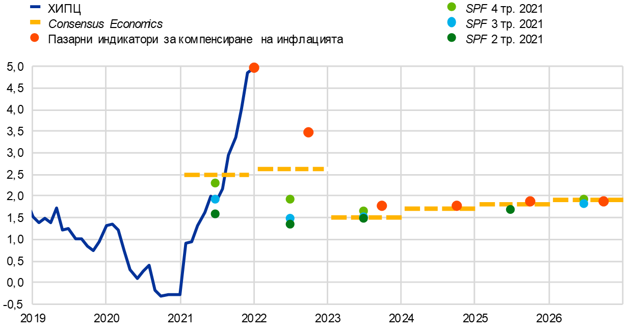 Източници:: Макроикономически прогнози на експерти на Евросистемата за еврозоната, декември 2021 г. и изчисления на ЕЦБ.