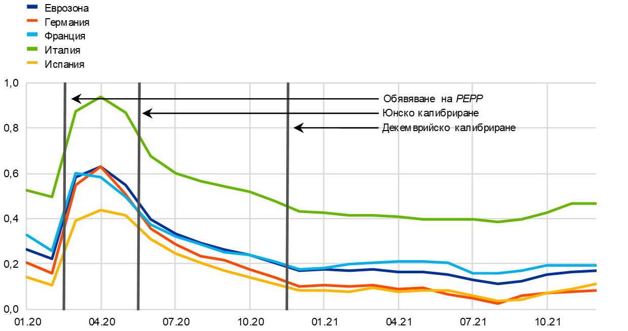 Към декември Управителният съвет прецени, че напредъкът в икономическото възстановяване и към средносрочната ни инфлационна цел позволява поетапно намаляване на темпа на покупките на активи през следващите тримесечия. Той обяви, че нетните покупки на активи по PEPP ще приключат през март 2022 г. и че останалите програми за закупуване на активи постепенно ще бъдат съкратени.