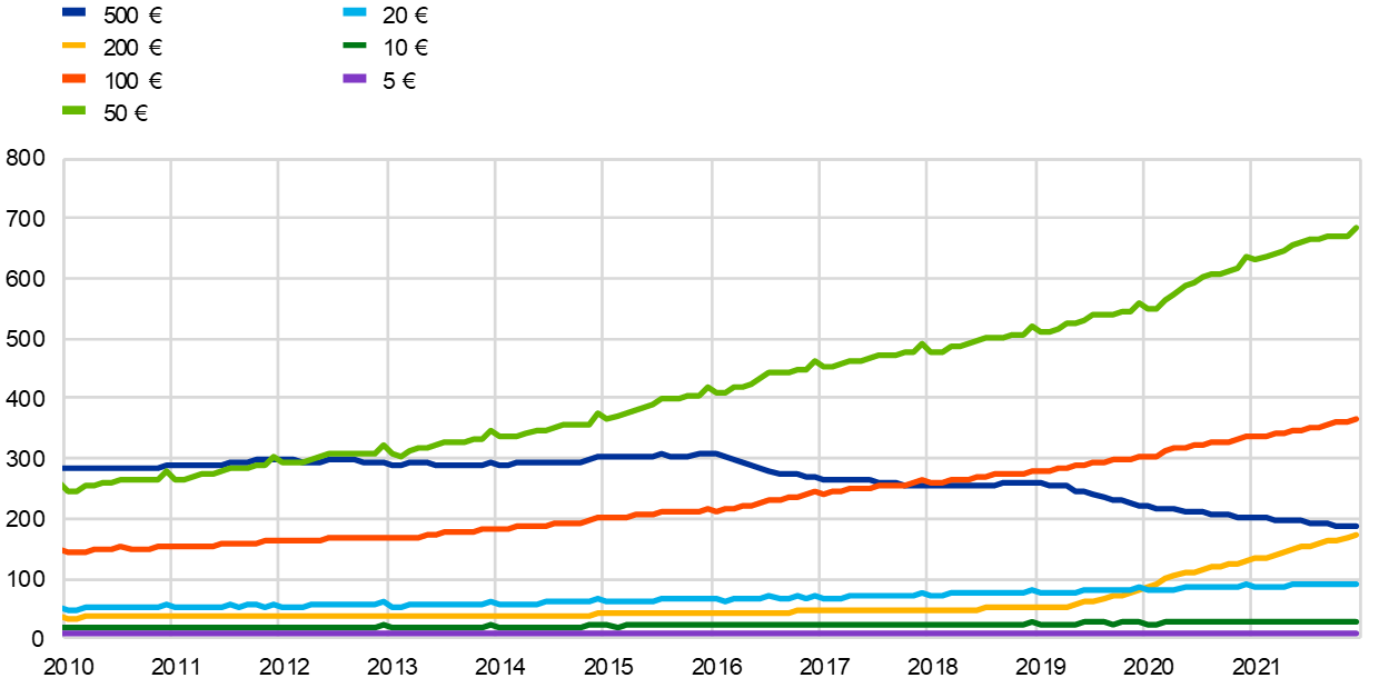 Еврото се радва на силна подкрепа: 79% от участниците от еврозоната в проучване на Евробарометър, проведено през юни и юли 2021 г., гласуват доверие на единната валута. То обаче трябва да бъде жизнеспособно в цифровата епоха. Затова през 2021 г. Управителният съвет даде ход на 24-месечен изследователски етап на проект за възможно въвеждане на цифрово евро. Същевременно парите в брой ще запазят важната си роля в живота на гражданите. През декември ЕЦБ обяви плановете си за нов дизайн на бъдещите евробанкноти, в чието разработване принос ще имат и гражданите. Очаква се окончателния дизайн да бъде избран през 2024 г.