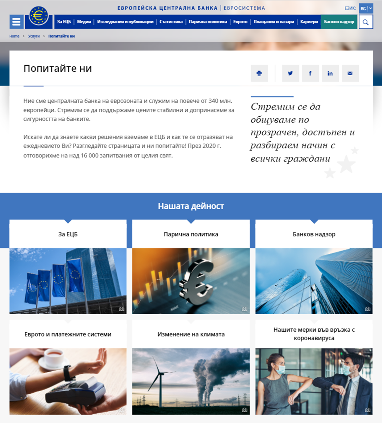 Това намери отражение в портала „ЕЦБ Ви слуша“ и в резолюцията на Европейския парламент от 10 февруари 2021 г. относно Европейската централна банка – Годишен доклад за 2020 г.