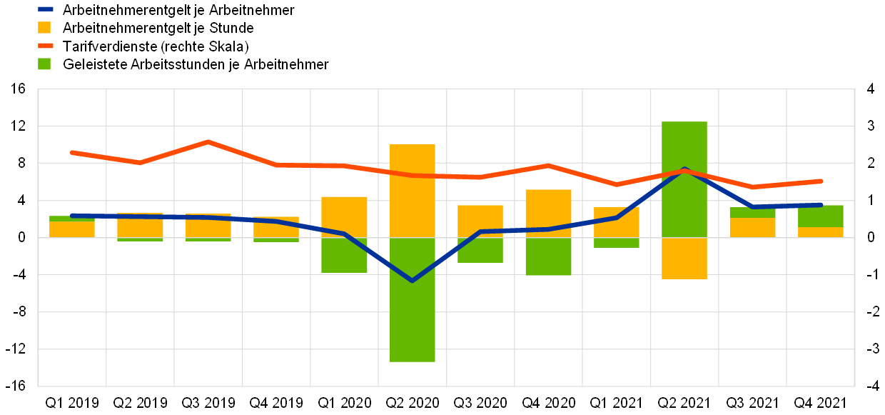 Anmerkung: Die jüngsten Angaben beziehen sich auf 2021 (linke Grafik) bzw. auf das vierte Quartal 2021 (rechte Grafik), das sich aus impliziten Monatswerten ergibt.