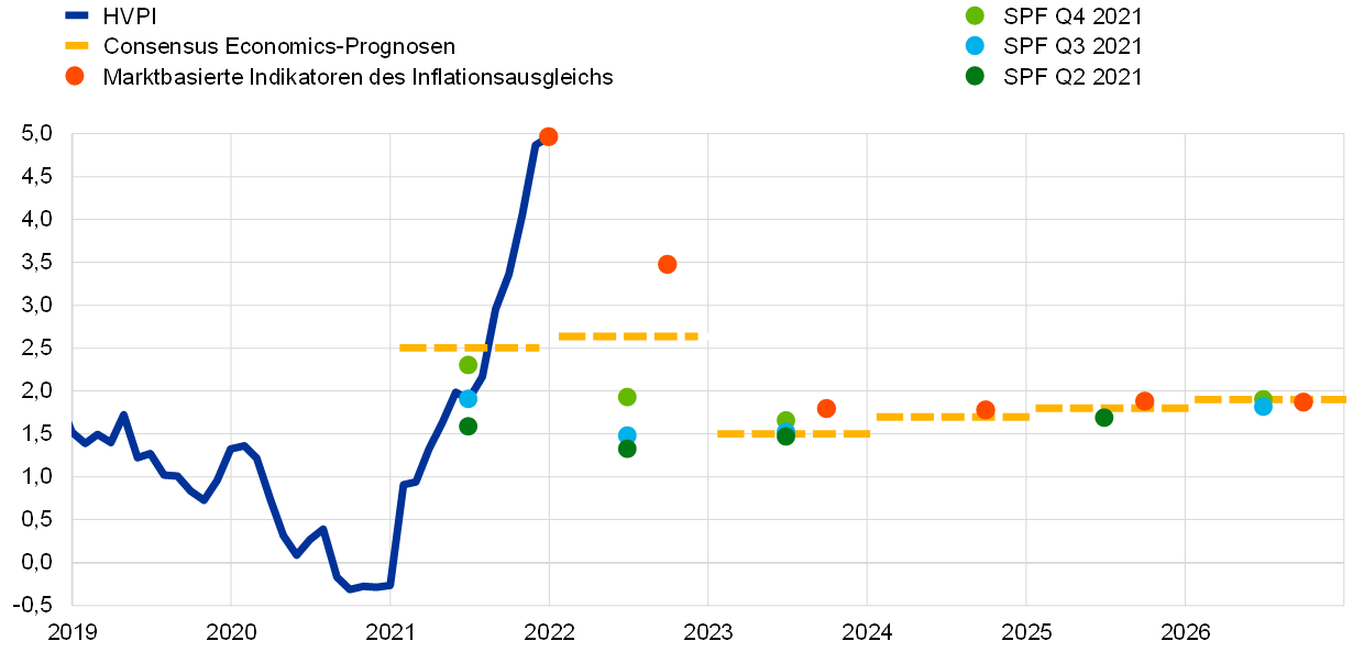 Quellen: Von Experten des Eurosystems erstellte gesamtwirtschaftliche Projektionen für das Euro-Währungsgebiet, Dezember 2021 und EZB-Berechnungen.