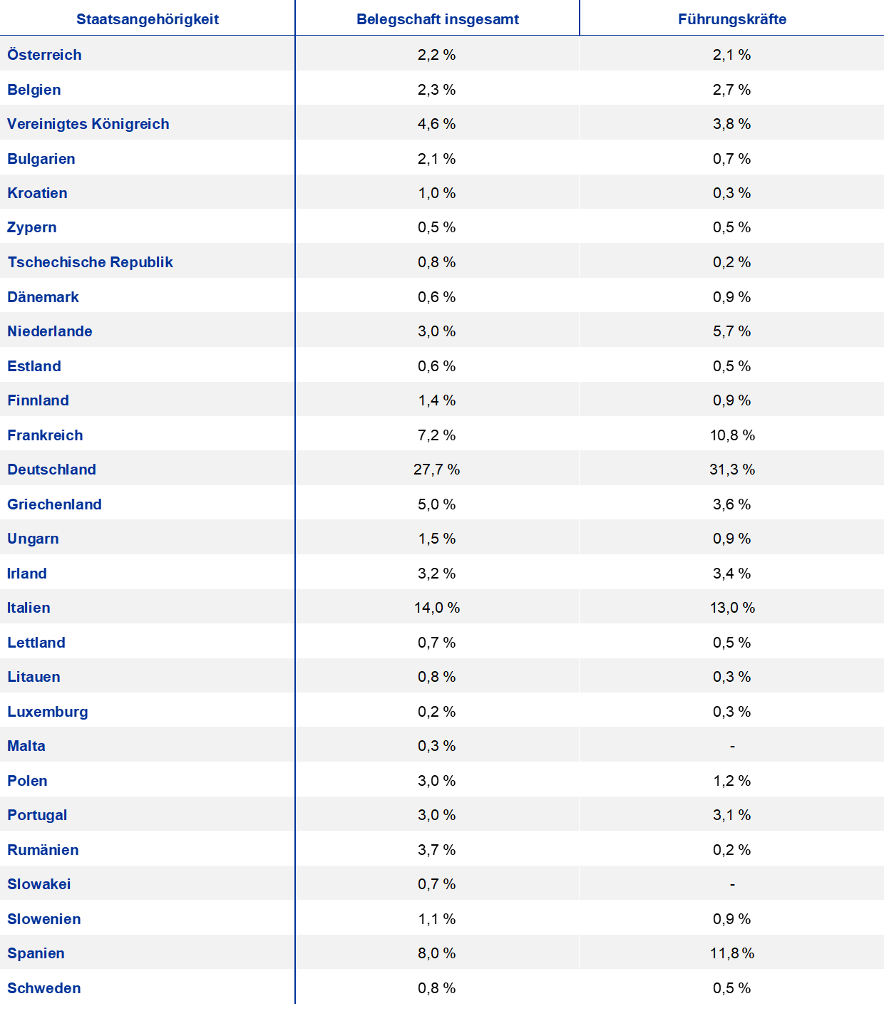Die Zahlen basieren auf Angaben des Personals. Wer für die EZB arbeiten will, muss den Nachweis über die Staatsbürgerschaft von mindestens einem EU-Mitgliedstaat erbringen. Eine deutsche Staatsbürgerschaft muss für die korrekte Ermittlung von Zulagen in jedem Fall gemeldet werden.