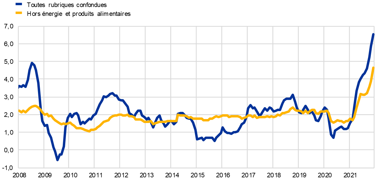 Sources : Projections macroéconomiques pour la zone euro établies par les services de l’Eurosystème, décembre 2021 et calculs de la BCE.