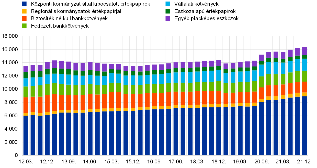 A Kormányzótanács decemberre úgy ítélte meg, hogy a gazdaság élénkülése és a középtávú inflációs célunk felé tett előrelépés lehetővé teszi, hogy az eszközvásárlásaink ütemét a soron következő negyedévekben lépésről lépésre lassítsuk. A tanács bejelentette, hogy a PEPP szerinti nettó eszközvásárlások 2022 márciusában leállnak, a többi eszközvásárlási program mértékét pedig fokozatosan csökkenti.