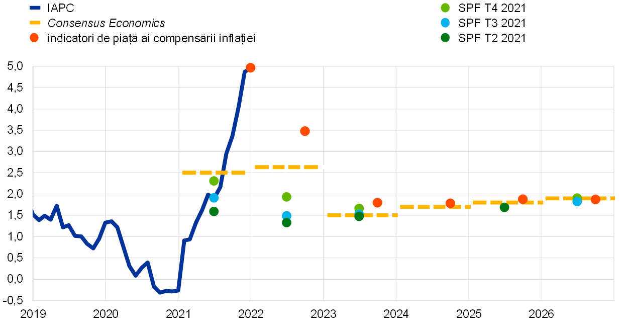 Sursa: Proiecțiile macroeconomice pentru zona euro ale experților Eurosistemului, decembrie 2021 și calcule BCE.