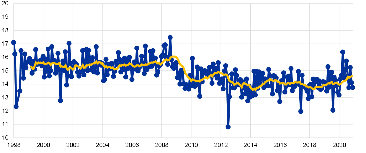 While the readability of ECB speeches has improved over time, the challenge of conveying messages in a simple, but not simplistic, way remains difficult, especially in times of crisis. Chart 13 shows that the readability of ECB speeches has generally improved since the launch of the euro, especially in the aftermath of the global financial crisis. At the same time, the pandemic and the policy response to it has led to more complex and complicated packages of measures, which is also reflected in the complexity of speeches, as is shown by the uptick in the readability score over the year 2020. The challenge for the future will be to return to the pre-pandemic downward trend when it comes to the complexity of communication activities.