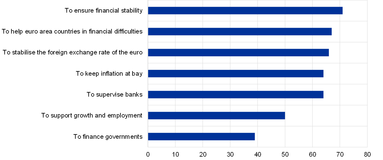 Notes: Respondents were asked the following question: “To your knowledge, which of the following are tasks or objectives of the ECB?”