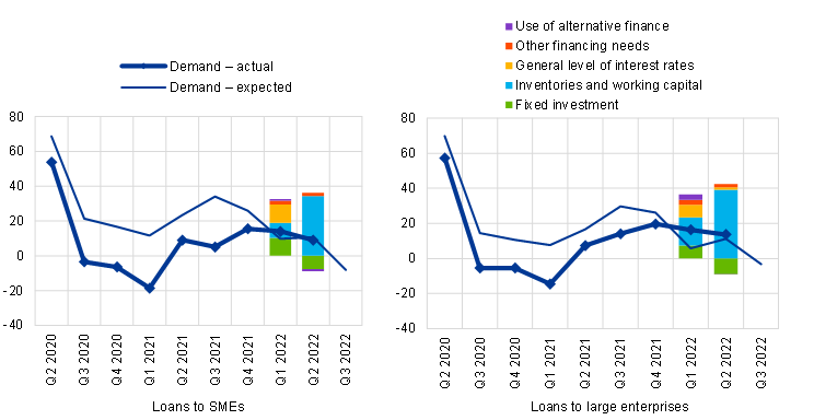 Changes in demand for loans or credit lines to SMEs and large enterprises, and contributing factors