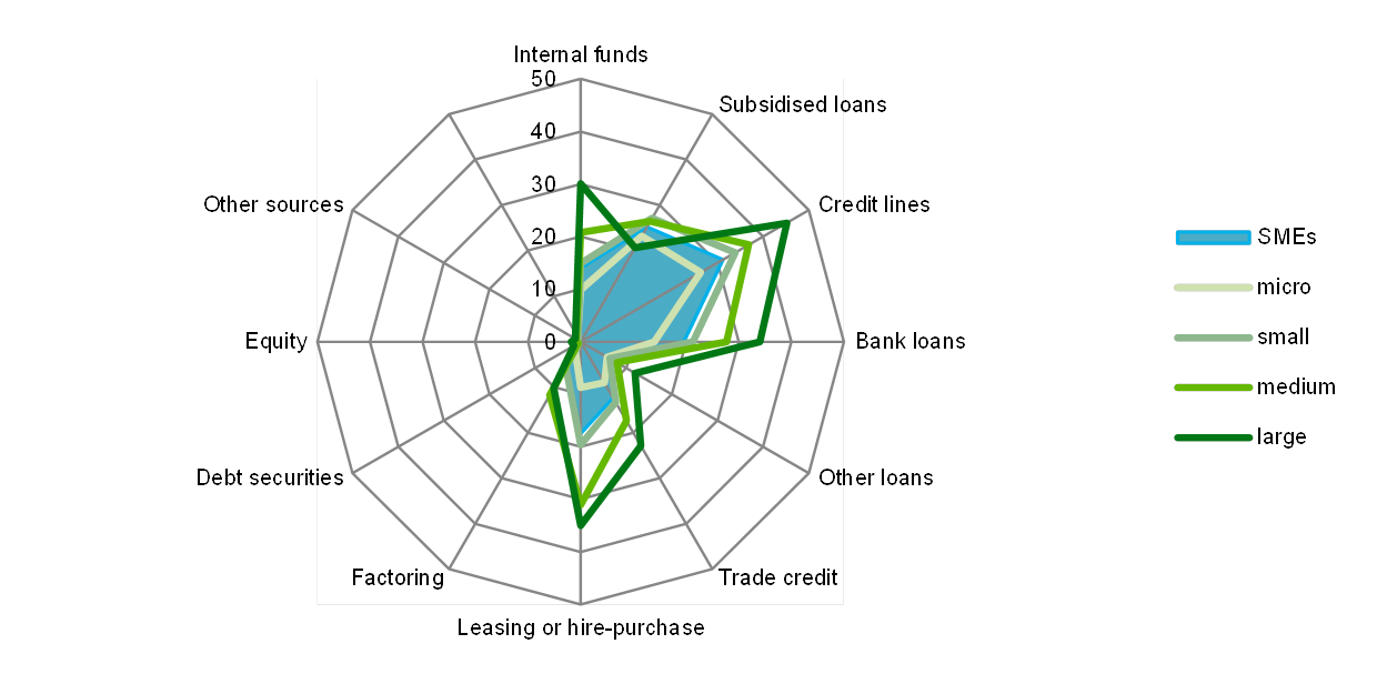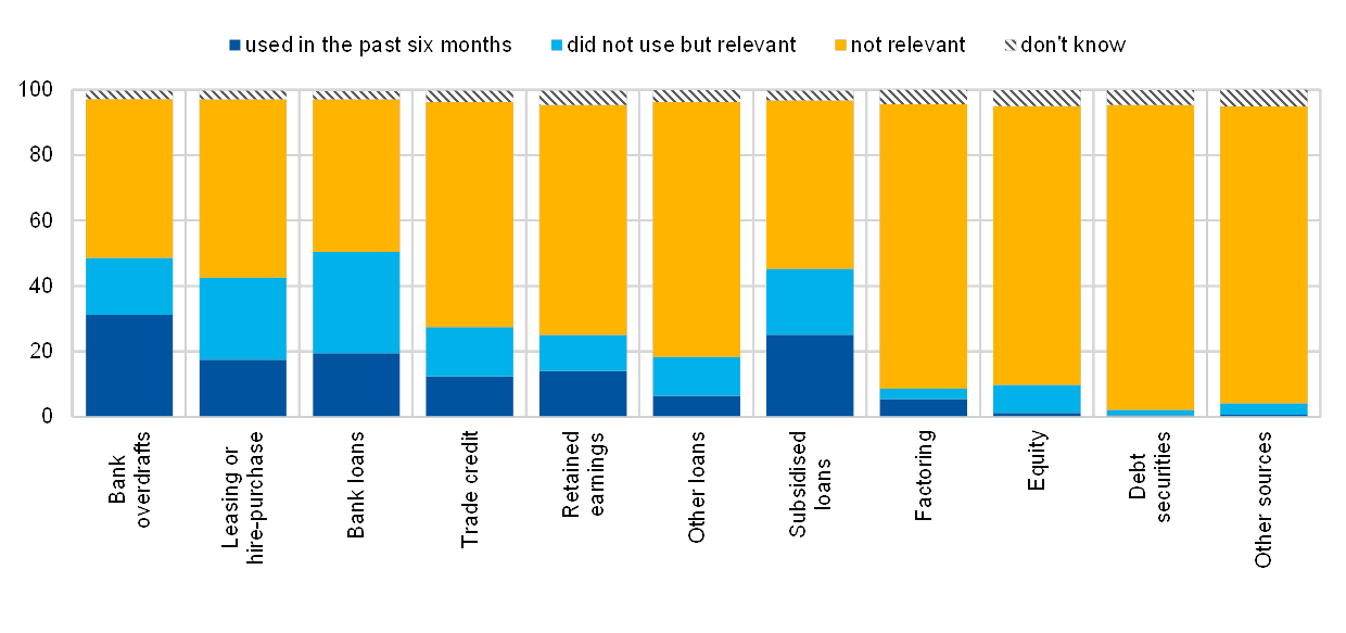 9. See the note to Chart 11. Only survey respondents who report that a particular financing instrument is relevant for their enterprise are asked about their need for that source of financing.