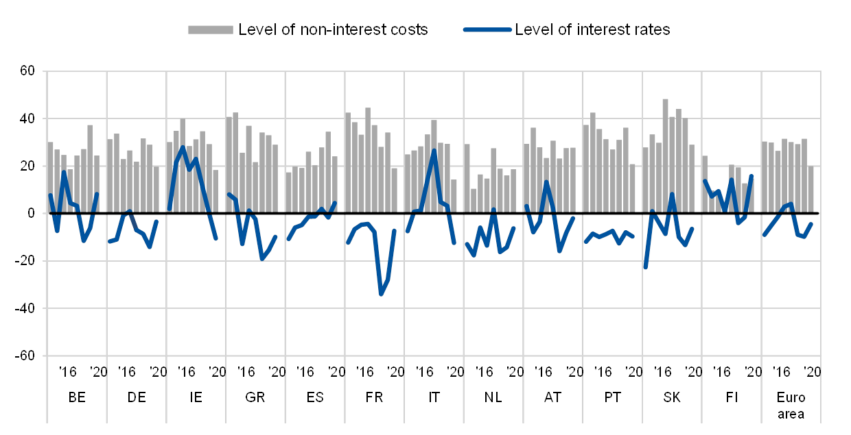 Notes: The net percentage is the difference between the percentage of enterprises reporting an increase for a given factor and the percentage reporting a decrease. From round 11 onwards (April-September 2014), the concept of “Net interest expenses (what you pay in interest for your debt minus what you receive in interest for your assets)” was replaced with “Interest expenses (what your company pays in interest for its debt)”.