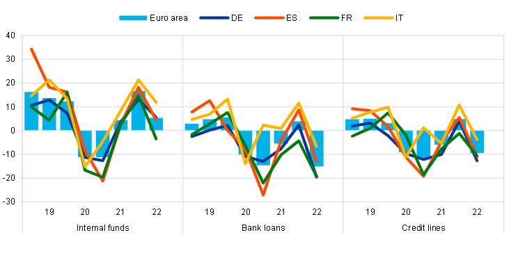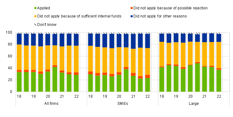 8. See the note on Chart 13. Only survey respondents who report that a particular financing instrument is relevant for their enterprise are asked about their need for that source of financing.