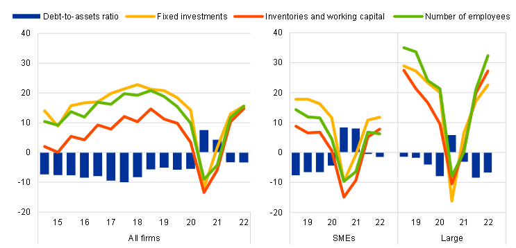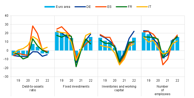 Changes in debt-to-assets ratios and interest expenses of SMEs across euro area countries
