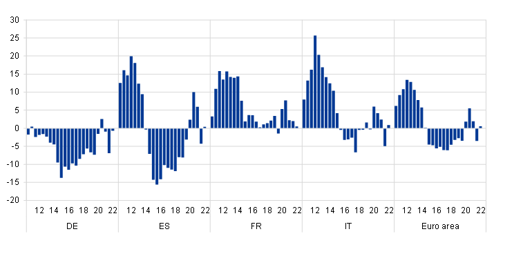 Across countries, developments in SME activity have followed very similar patterns over the last six months (see Chart 2 and Chart 32 in Annex 1). SMEs in the largest euro area countries continue to suffer from falling turnover and declining profits, with the latter reflecting the higher net percentage of SMEs reporting increases in labour and other costs, as well as interest rate expenses (particularly in Spain, where that figure stands at 22%, compared with 7% for the euro area as a whole).