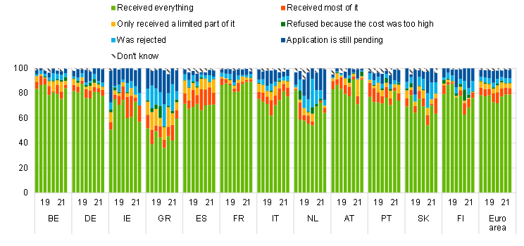 Base: Enterprises for which the instrument in question is relevant. Figures refer to round 24 (October 2020-March 2021) of the survey.