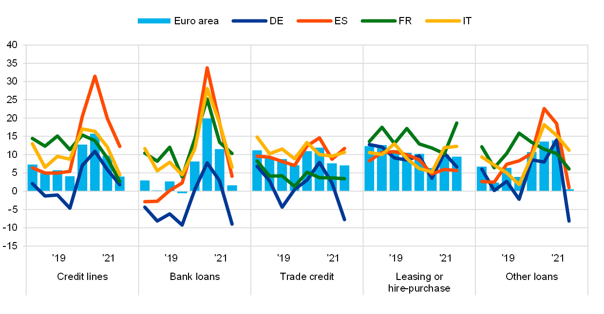 Base: SMEs for which the instrument in question is relevant. Respondents replying with “not applicable” or “don’t know” are excluded. The figures refer to rounds 18-25 of the survey (October 2017-March 2018 to April 2021-September 2021).