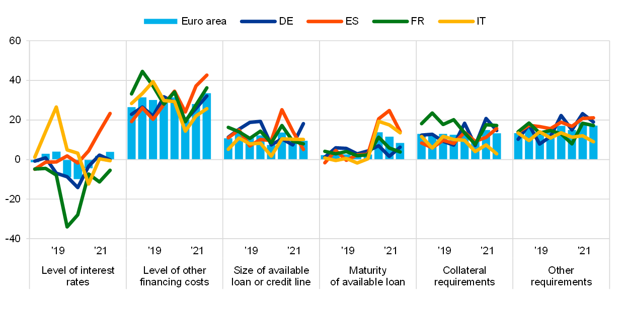 Base: SMEs for which bank loans are a relevant source of financing. The figures refer to rounds 18-25 of the survey (October 2017-March 2018 to April 2021-September 2021).
