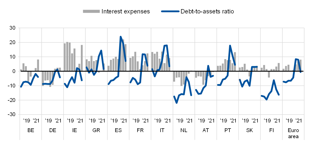 Changes in debt-to-assets ratios and interest expenses of SMEs across euro area countries