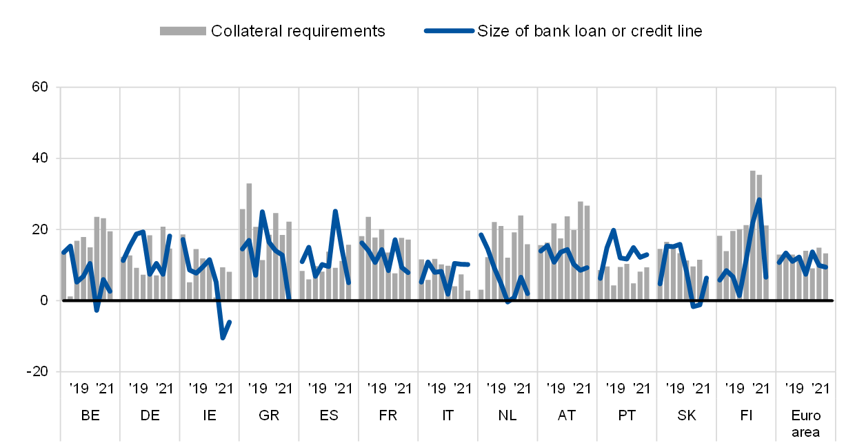 Changes in non-price terms and conditions of bank financing for SMEs across euro area countries